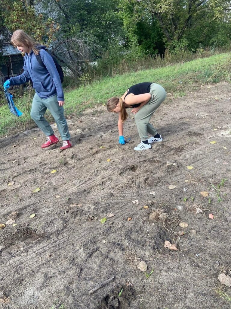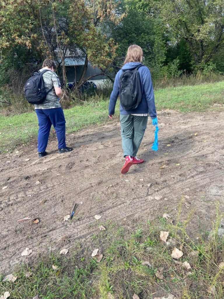 Następnie młodzież posprzątała okolicę 🧹, niestety worki szybko zapełniły się śmieciami 🚮.
