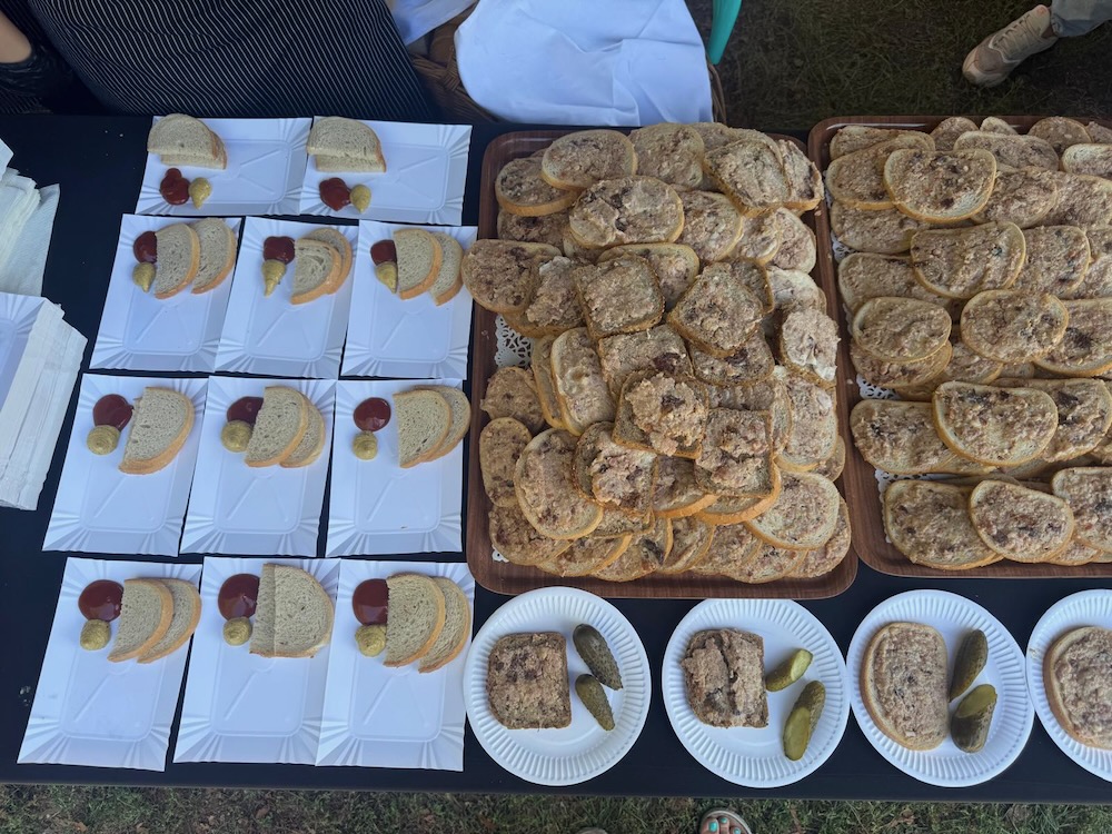 oraz pajdy chleba ze smalcem i ogórkiem małosolnym.