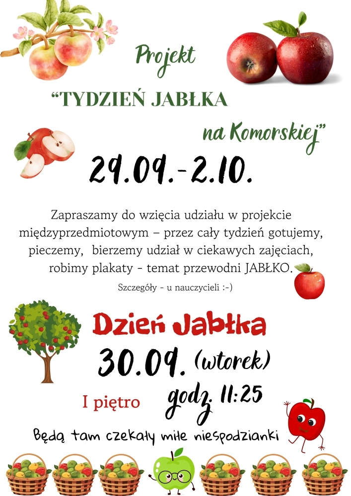 Zapraszamy do wzięcia udziału w projekcie międzyprzedmiotowym – przez cały tydzień gotujemy, pieczemy, bierzemy udział w ciekawych zajęciach, robimy plakaty!
