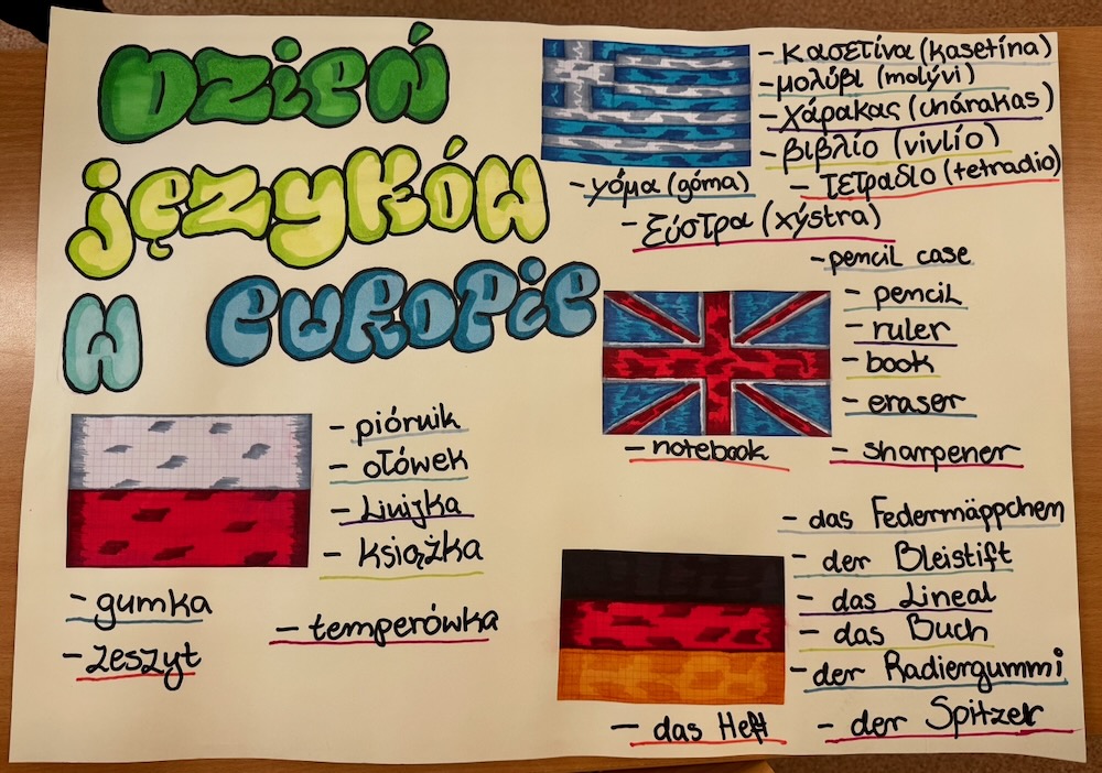 Jak mówi stare przysłowie (które właśnie wymyśliliśmy): „Kto języki zna, ten dwa razy żyje” – dlatego z okazji Europejskiego Dnia Języków Obcych postanowiliśmy rozruszać szkolną wyobraźnię i ogłosiliśmy konkurs na plakat promujący różnorodność językową Europy. Warunek? Minimum trzy kraje lub języki, maksimum kreatywności – i tej zdecydowanie nie zabrakło!