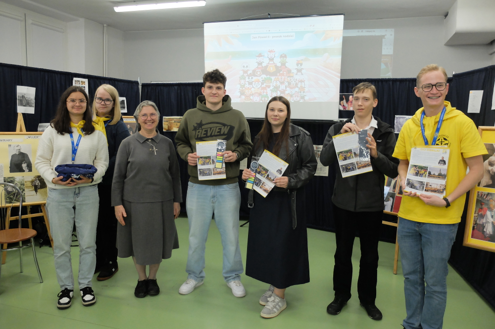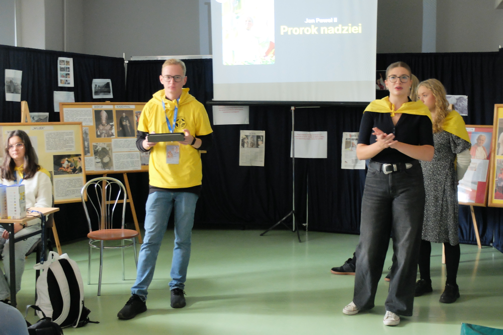 16 października gościliśmy studentów z Fundacji „Dzieło Nowego Tysiąclecia” będącej od 25 lat żywym pomnikiem Jana Pawła II wspierającą uzdolnioną młodzież. W czasie spotkań z naszymi uczniami mówili oni o wyjątkowych relacjach Jana Pawła II z młodzieżą, o wpływie nauczania Papieża na ich życie i o działalności Fundacji.Uczniowie odpowiadali też na pytania dotyczące naszego Patrona. Najlepsi zostali nagrodzeni. Dziękujemy!