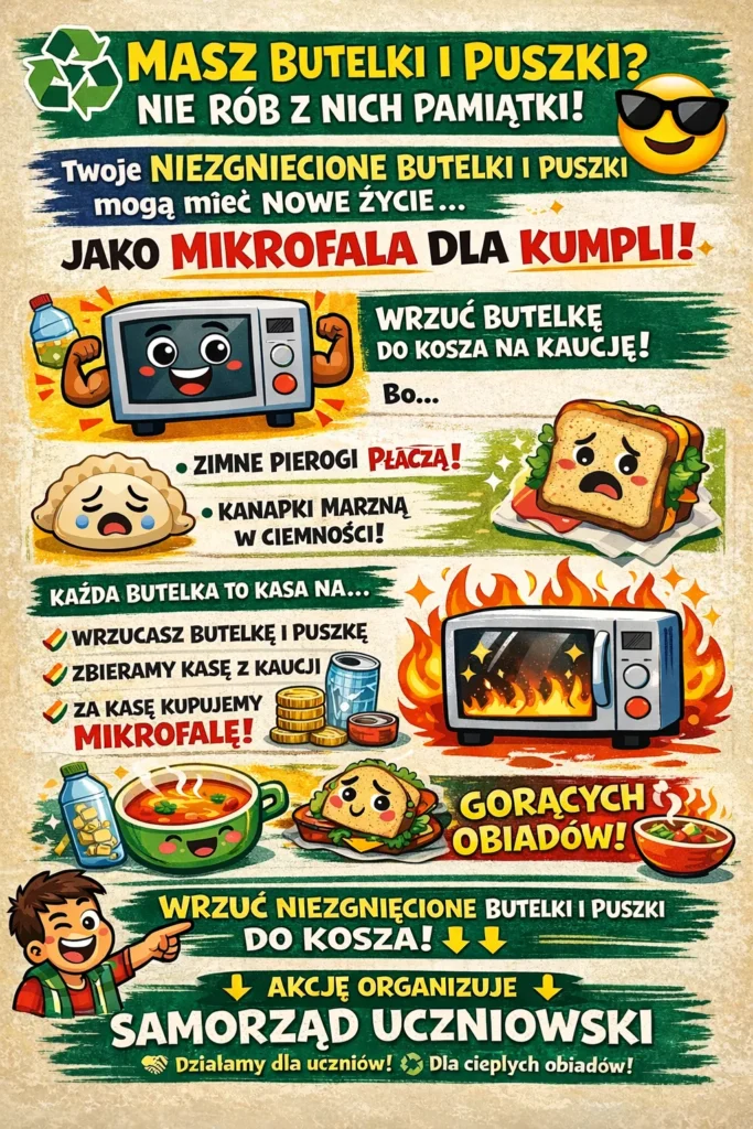 💰 Pieniądze zebrane z kaucji przeznaczymy na zakup mikrofalówki dla uczniów, aby każdy mógł wygodnie podgrzać swój posiłek.