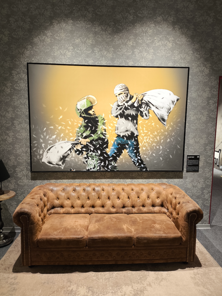 Ekspozycja obejmuje graffiti, fotografie, rzeźby, instalacje wideo oraz wydruki na różnych materiałach, takich jak płótno, tkanina czy aluminium. Starannie zaprojektowana przestrzeń wystawiennicza pozwala widzom zanurzyć się w twórczości Banksy’ego i lepiej zrozumieć jego przekaz. Zgodnie z jego podejściem do praw autorskich, prezentowane dzieła nie są oficjalnie autoryzowane, co dodatkowo podkreśla wyjątkowy i nieuchwytny charakter artysty.
