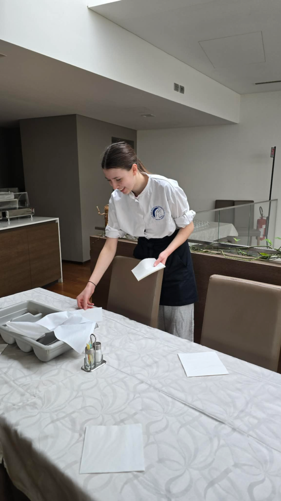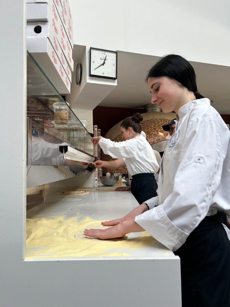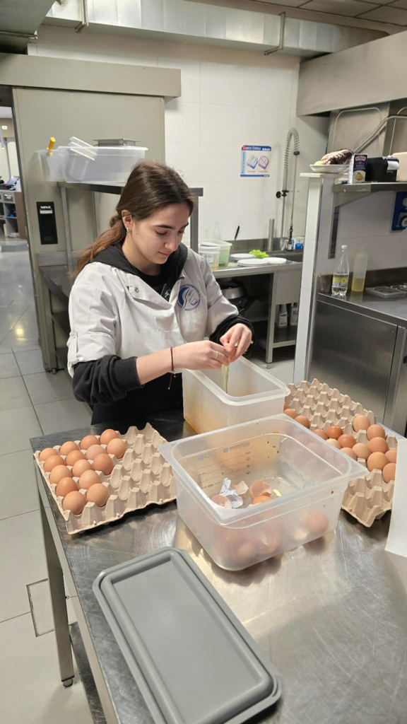 Podczas stażu technicy żywienia skupili się na kompleksowej obsłudze procesu gastronomicznego – profesjonalne przyjęcia i magazynowanie dostaw zgodnie z rygorystycznymi normami bezpieczeństwa żywności, zaawansowana obróbka termiczna surowców i estetyczna ekspedycję dań to tylko część nowych obowiązków. Równolegle grupa cukierników zgłębiała tajniki produkcji regionalnych wyrobów, takich jak tradycyjna Gubana czy wielkanocna Colomba, pracując przy tym na zaawansowanym technologicznie parku maszynowym. Proces ten obejmował naukę receptur oraz biegłą obsługę mikserów planetarnych, pakowarek próżniowych oraz precyzyjne monitorowanie parametrów temperatury i tekstury wyrobów. Praca w warunkach wysokiego tempa włoskiego serwisu stała się dla młodzieży kluczowym testem umiejętności komunikacyjnych oraz doskonałą lekcją optymalizacji działań w zespole.