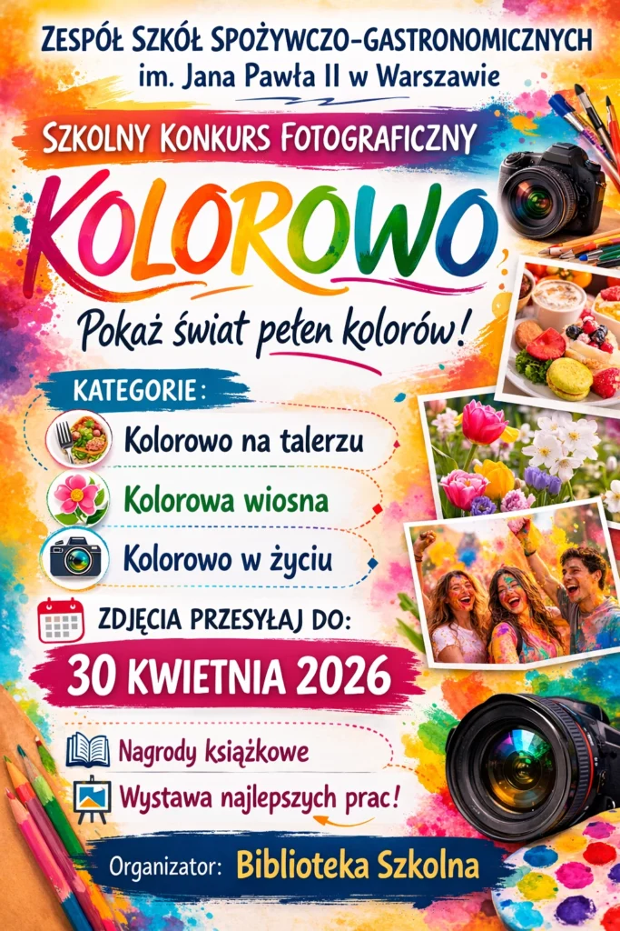 Biblioteka szkolna zaprasza uczniów do udziału w Szkolnym Konkursie Fotograficznym „Kolorowo”.