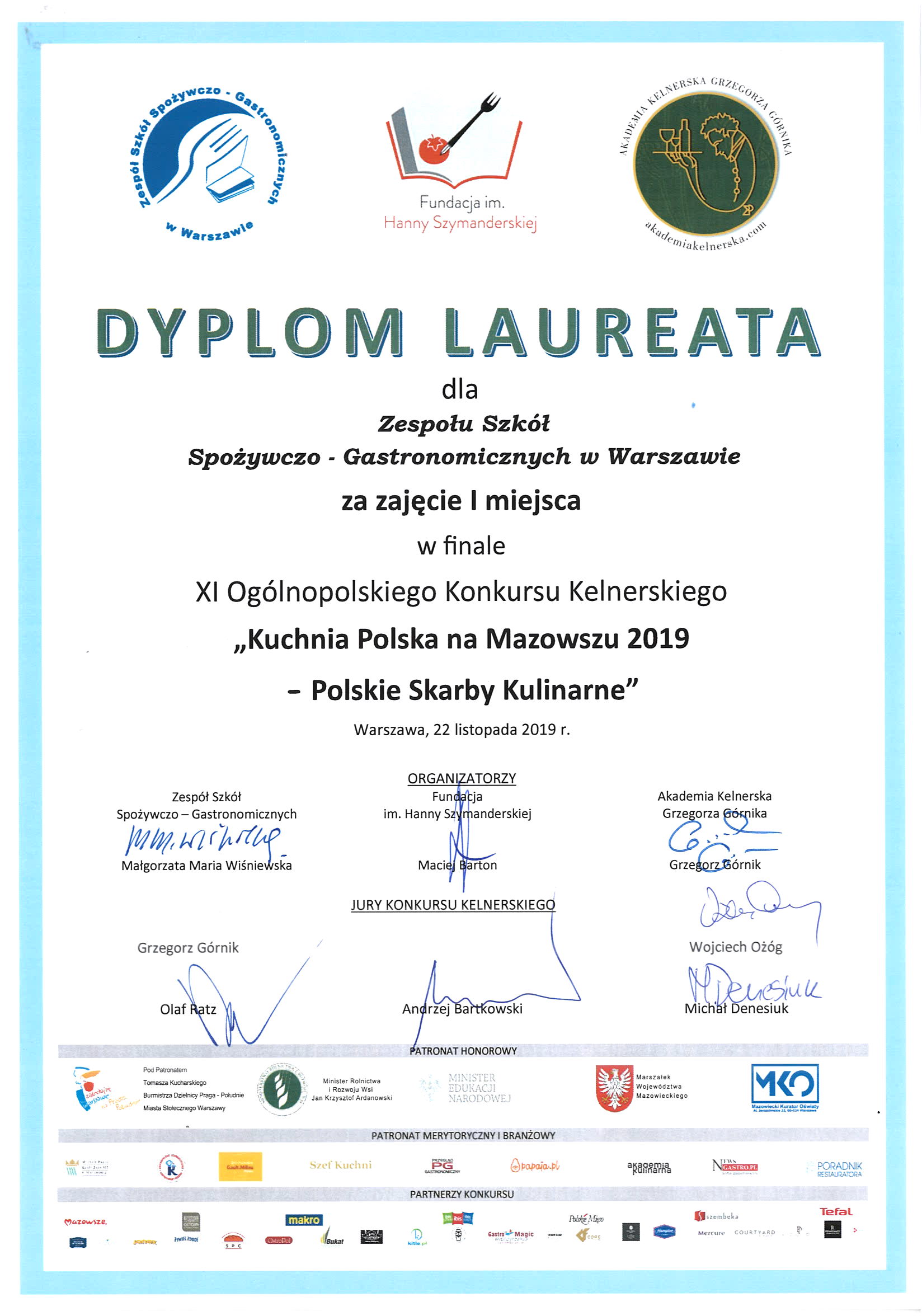 Dyplom Laureata Kuchnia Polska na Mazowszu 2019
